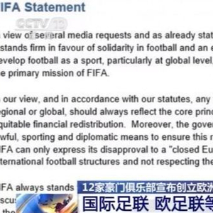 12家豪门俱乐部宣布创立欧洲超级联赛 国际足联欧足联等明确反对