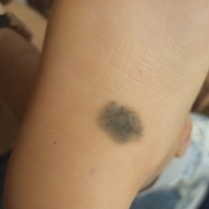 男,37岁,右胳膊臂弯处有一颗大约5毫米的凸起黑痣。