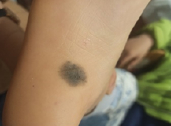 9岁男孩,脚底板有一颗大黑痣。出生时就有,随着年龄增大越来越大,而且边缘不规则,颜色深浅不一致。