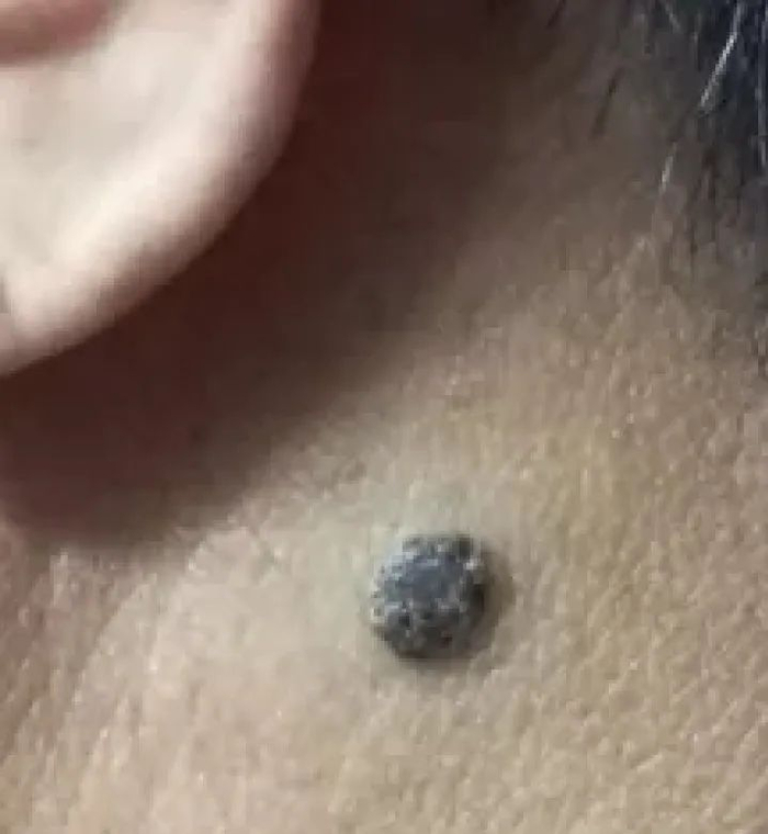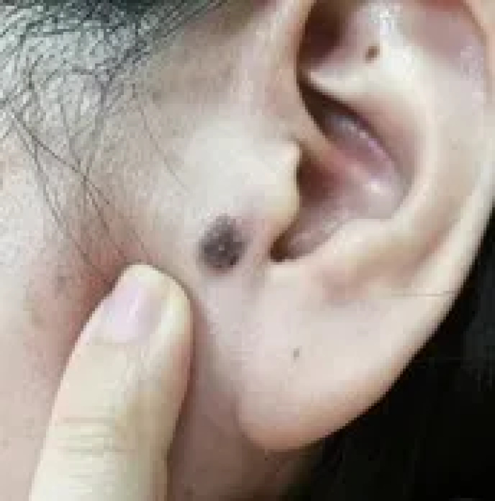 女,左耳廓附近,黄豆大小,偶尔会痒,已经很多年了。