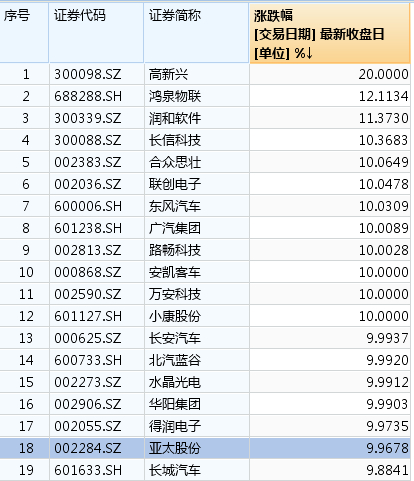此外,汽车配件板块中,沉寂已久的龙头股福耀玻璃(600660.SH)放量涨停;文灿股份(603348.SH)、常熟汽饰(603035.SH)相继涨停;氢能源概念股雪人股份(002639.SZ)、京城股份(600860.SH)亦录得涨停。