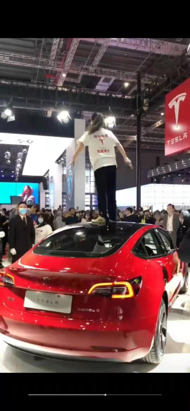 3月9日,河南特斯拉车主张女士手持喇叭坐在车顶上维权的视频在网络上流传。