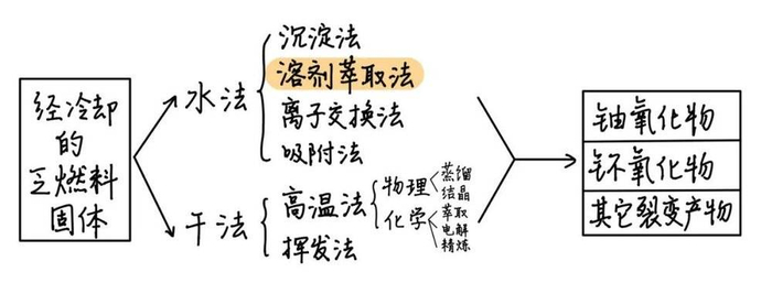 目前最常用的方法是一种溶剂萃取法,也叫普雷克斯法。这个技术在20世纪70年代起就在若干个国家使用了,目前已经是公认的比较安全的技术。