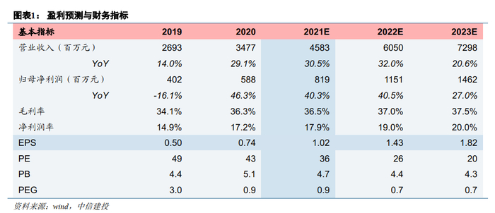 虽然公司在2020年进行了较大幅度扩产,但仍无法完全满足快速增长的市场需求,产能持续紧张。未来5年,公司资本支出将保持20-30%年化增速,持续加大研发投入和扩产力度。公司原有已经投入使用园区规模33w平米,目前在建4个新工业园区达65w平米。2021-2024年为公司项目密集建设期,四个项目总计投资金额达94.6亿元,产能从2021年中起逐步释放,预计2025年项目全部达产,可贡献营收86.1亿元/年,届时公司营收可达120亿元,2020-2025年营收CAGR达28.1%。目前公司债务杠杆合理,后续有较大提升空间,短期对外借款和银行授信额度大幅增加也展示了公司扩产的力度与决心。我们认为,新工业园扩产项目为高毛利产品,公司未来盈利水平长期看好。我们维持新5年规划前3年利润增速高于收入增速,收入增速高于资本支出增速的判断。