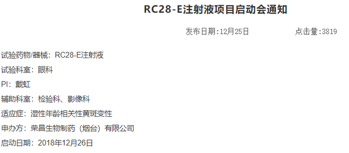 (荣昌生物的VEGF抑制剂临床信息)