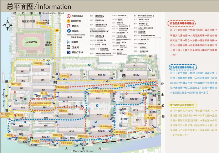 东门→太空涂鸦→地磅→涂鸦打破次元壁→古仓→人民河景观带→通波塘→松江油脂化工厂旧址→东门