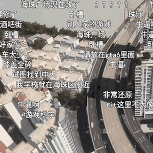 在游戏中建构的城市景观,其逼真程度让不明真相的围观群众心生惊讶,他们在弹幕里抒发真情实感:你少拿航拍骗我。