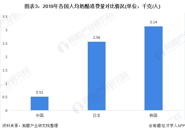 从人均消费量看,根据食品伙伴网行业研究中心数据显示,2019年我国人均奶酪消费量为0.51千克/人,对标消费习惯较为接近的日本及韩国,则分别有2.56千克/人、3.14千克/人,我国人均奶酪消费量仍然处于较低水平。