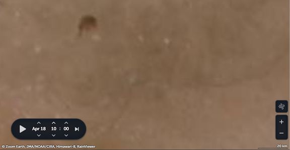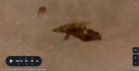 4月18日蒙古国火灾发生前后烧毁面积对比,右下方比例尺标注20km / Zoom Earth