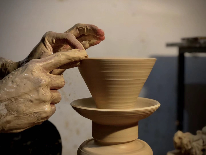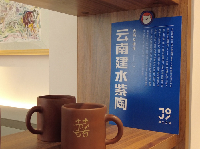于是,唐峰和他的团队,开始寻求与独立设计师的合作。最后,找到了一位女设计师,用云南建水产的紫陶,做了一款陶瓷手握主人杯。