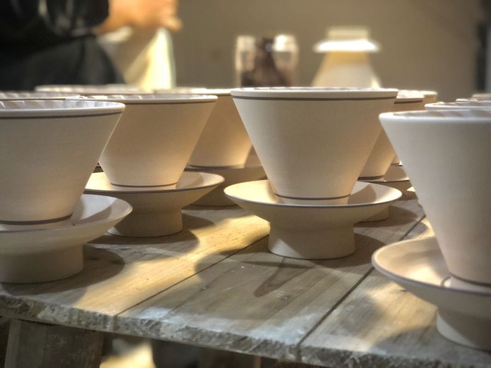 “对于一杯咖啡来说,杯子也是它的特色。刚开始我们想过用一些上海特色的老杯子,但后面我们开始思考,能不能结合一些中国的传统手工艺呢?”