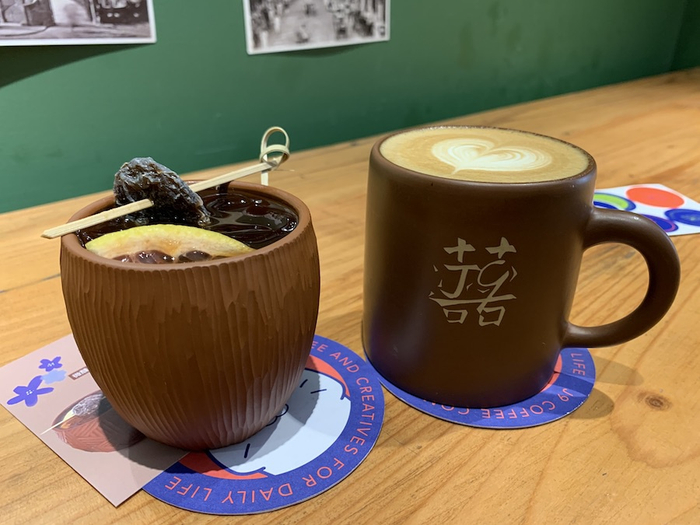 左手边为“津久里”,咖啡里加入黄酒,独特的搭配。 澎湃新闻记者 王昱 图