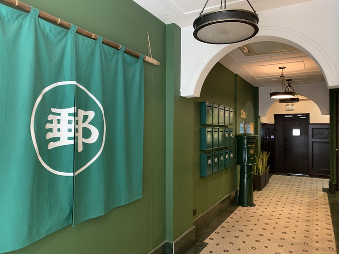 时配合邮政的主题,将楼道的墙面都刷成了复古的绿色。 澎湃新闻记者王昱 图