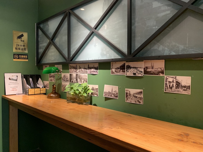 不少顾客把津久咖啡馆称为“邮政博物馆的彩蛋”。这个比喻特别恰当,不仅是因为它坐落在上海邮政博物馆的对面,更重要的是咖啡馆所在的建筑本身过去也是上海邮政总局的一部分,同样的马赛克地砖,同样的水磨石地面,同样的“邮政绿”,无处不诉说着老上海邮政的故事。