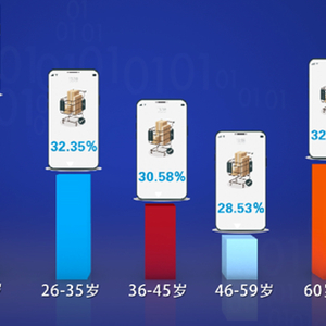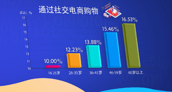 在传统社交电商购物的人群,随年龄的增长,比例也有不同程度的增长。