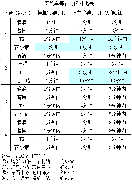 原标题:福州消委会测评网约车服务质量 花小猪、T3出行约车时间长
