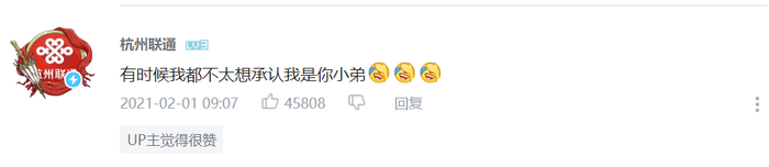 视频中,联通那是相当直白地介绍了自己目前最热门的几大套餐,连“杭州联通”都忍不住吐槽:“有时候我都不太想承认我是你小弟”。甚至有网友直接上线挑事儿,疯狂拉踩,希望能用友商来鞭策下联通的业务能力。