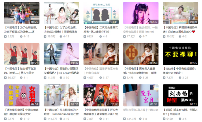 打开电信的作品专区,变身金泫雅、软萌甜妹、温柔旗袍、爱杀宝贝……这些文案让你恍惚进了B站舞蹈区。