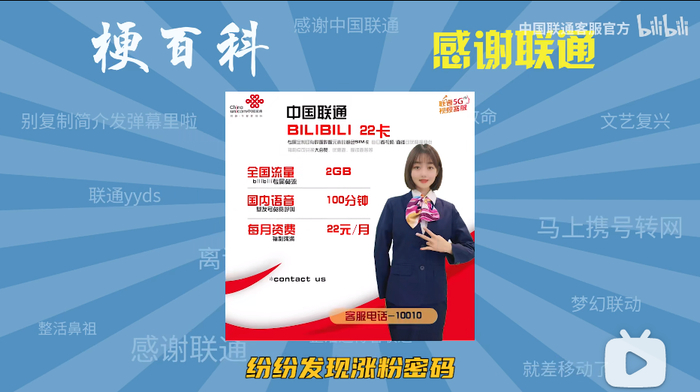 靠着在B站的花式操作,联通涨粉与点赞齐飞,但同时也招惹了招商银行、电网头条、阿里巴巴客服等一大批“不顾体面”的跟风者,引得联通直接官方造梗,详细百科了“感谢联通”是什么梗。