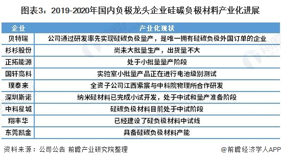 原标题:2021年中国硅碳负极材料行业发展现状及企业布局对比分析 部分企业得到批量化应用 来源:前瞻产业研究院