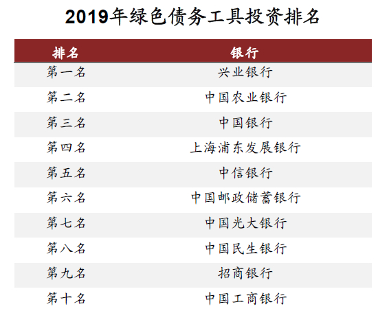 在承销端,2019年商业银行债券承销规模与上榜家数总体大幅落后于券商。中信证券是2019年承销绿色债券最多的券商机构,承销规模达177亿元,商业银行中承销规模最大的是中国银行,2019年录得77亿元。从上榜家数看,排名在绿色债券承销规模前25名的金融机构中,15家为券商机构,商业银行仅有10家。我们认为绿色债券承销业务未来有望提高银行中收,且本身通过绿色信贷项目接触到的企业可能就有发行绿债的需求,值得进一步挖掘。