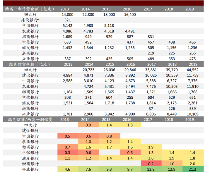 图表:主要银行绿色信贷/两高一剩信贷比例