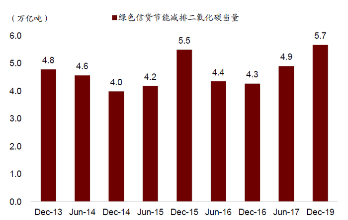 图表: 绿色信贷节能减排二氧化碳当量在2019年末达到5.7亿吨,主要来自于可再生能源及清洁能源项目