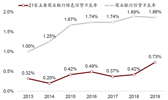 图表: 绿色信贷不良率长期低于总体信贷不良率,反映信用成本的节约