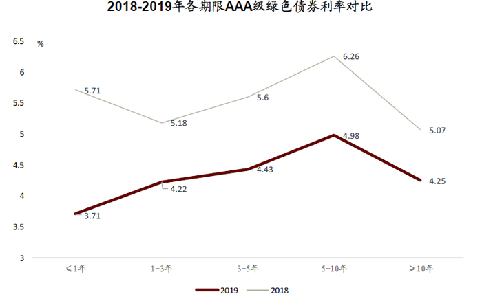 图表:2019年各期限绿色债券利率显著下降