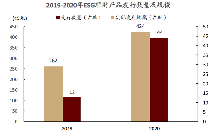 图表:2019年-2020年ESG理财产品规模高速增长。