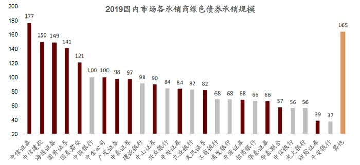图表:2019年商业银行绿色债券承销规模与上榜家数落后于券商。
