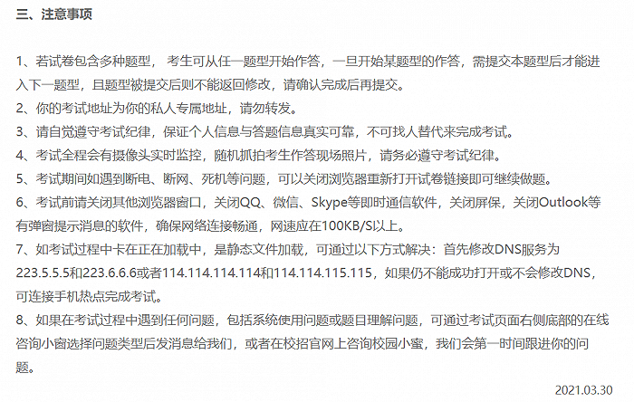在阿里实习生招聘的笔试注意事项里,明确规定不可找人代替来完成考试,并会全程摄像头实时监控,随时抓拍考生作答现场照片。
