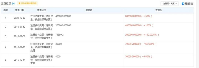 牧原股份上市后,牧原集团的注册资本也一路飙升,2015年12月由4000万元增至3亿元,2016年1月增至8亿元,2018年1月增至20亿元,2019年7月增至40亿元,2020年12月达到60亿元。