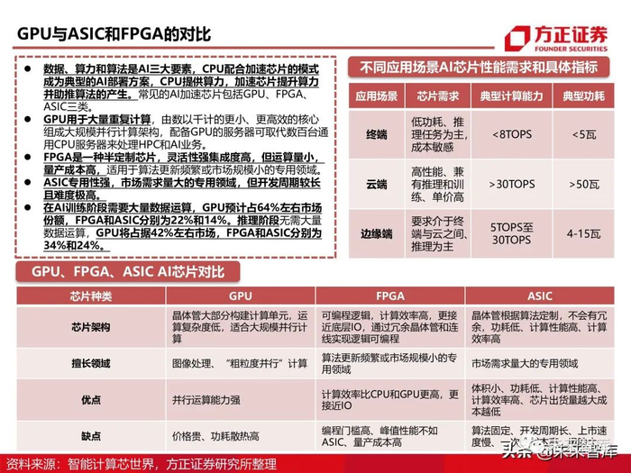 过去20多年里,GPU的基本需求源于视 频加速,2D/3D游戏。随后GPU运用自 身在并行处理和通用计算的优势,逐步开 拓服务器、汽车、矿机、人工智能、边缘 计算等领域的衍生需求。 虽然GPU无法离开CPU独立运作,但是在 当前“云化”加速的时代,离开了GPU的 CPU也无法胜任庞大的计算需求。所以 GPU和CPU组成了异构运算体系,从底层 经由系统软件和驱动层支持着上层的各种 应用。GPU已经成为了专用计算时代的刚 需。