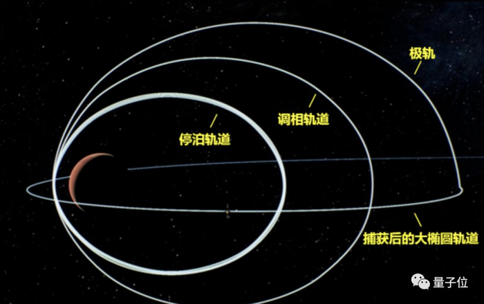 首先是被火星引力捕捉进入大椭圆轨道,然后进行数次调整,最终进入停泊轨道,连续绕火飞行。