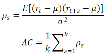 记资产日收益率序列为r,其均值和标准差分别为μ和σ。自相关性指标用滞后1~k阶(建议k取奇数,本研究取5)的自相关系数的均值定义: