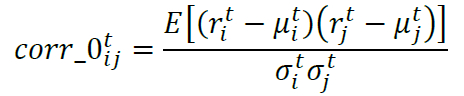 平均交叉相关性是单资产自相关性在两资产场景下的推广,衡量了一段较长时期内两种资产的平均相关关系。我们首先两种资产收益率序列的相关系数:
