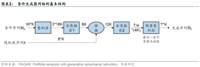 cGAN的基本结构包括条件生成器和条件判别器。cGAN基本原理与华泰金工研报《人工智能31:生成对抗网络GAN初探》(2020-05-08)介绍的GAN相同,即“以子之矛,攻子之盾”。条件生成器的目标是生成尽可能逼真的“赝品”,条件判别器的目标是尽可能将真品和“赝品”区分开,在交替训练的过程中,两者共同进步。