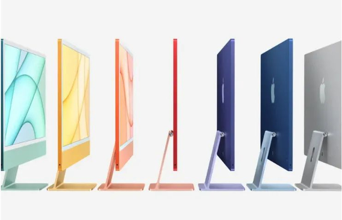 此次24英寸的iMac发布,全新的24英寸iMac共有多达7种配色,包括了绿色,黄色,橙色,红色,蓝色,紫色和灰色。