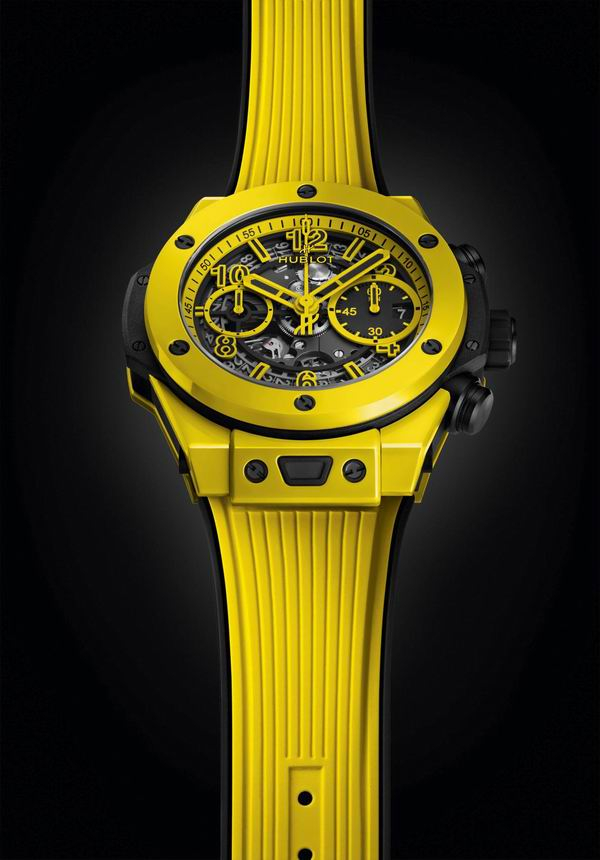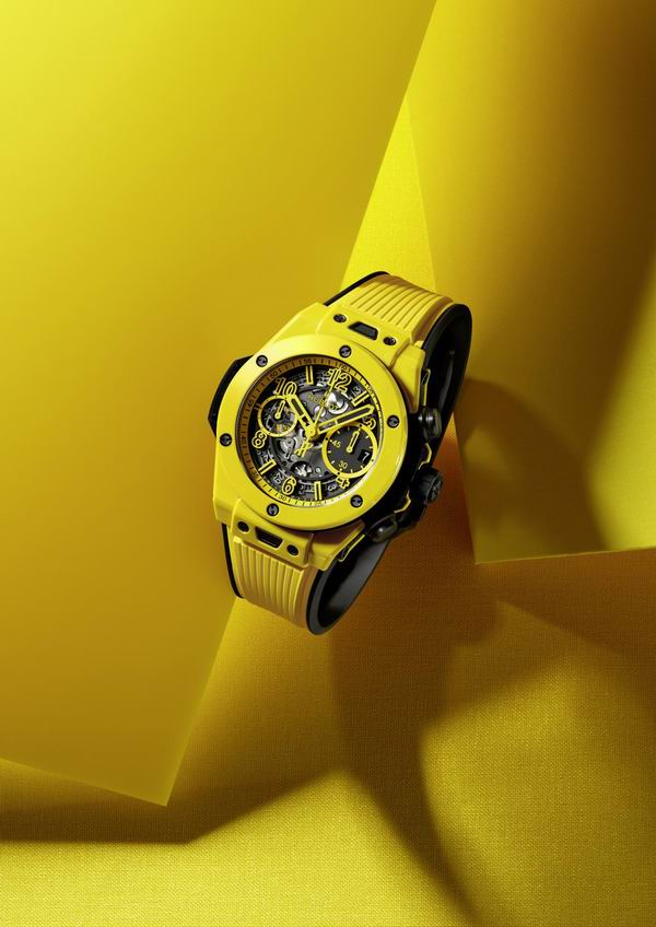 Big Bang Unico黄色魔力腕表限量发售250枚。42毫米表壳和表圈满溢阳光活力,在黄色陶瓷的映衬下熠熠生辉。从外缘、时标、分钟和秒钟计时盘,到阿拉伯数字和指针,这些细节均采用洋溢活力气息的黄色。透过蓝宝石镜面,UNICO HUB1280表厂自制机芯以及导柱轮的机械之美一览无遗。当经典邂逅新风尚