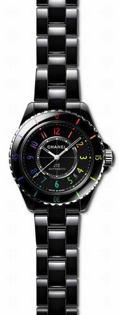 全新的J12 Electro 腕表采用黑色精密陶瓷与精钢打造表壳,宛如漆黑的午夜。其中的精钢单向旋转表圈饰以彩色霓虹设计时标,而黑色漆面表盘饰则同样以彩色霓虹设计时标,令整件作品仿佛一道在黑夜中生成的彩虹。这款38毫米尺寸的黑色精密陶瓷腕表搭载获得瑞士天文台COSC认证的Caliber 12.1自动上链机芯,一共限量发售1255枚。探秘纯粹意象 捕捉时光足迹