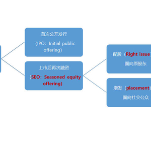 按照募资对象是否特定,SEO又可以分为:1)面向原股东的配股,英文全称为right issue;2)面向社会公众的增发,英文全称为placement。