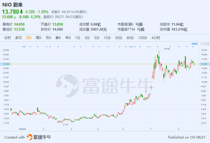 在蔚来完成定增后,市场也给予了积极的反馈,2020年6月15日至2020年8月20日,蔚来的股价涨幅高达132%,这背后与蔚来进行增发的用途有关。在其定增融资招股说明书上,蔚来称其本次增发募资的主要用途是研发(占比30%)、建厂扩产(占比15%)和日常运营与搭建营销与服务网络(占比40%)。因而,在资本市场认可蔚来定增扩产后会提高盈利能力的核心逻辑下,蔚来股价大涨也是可以理解的。