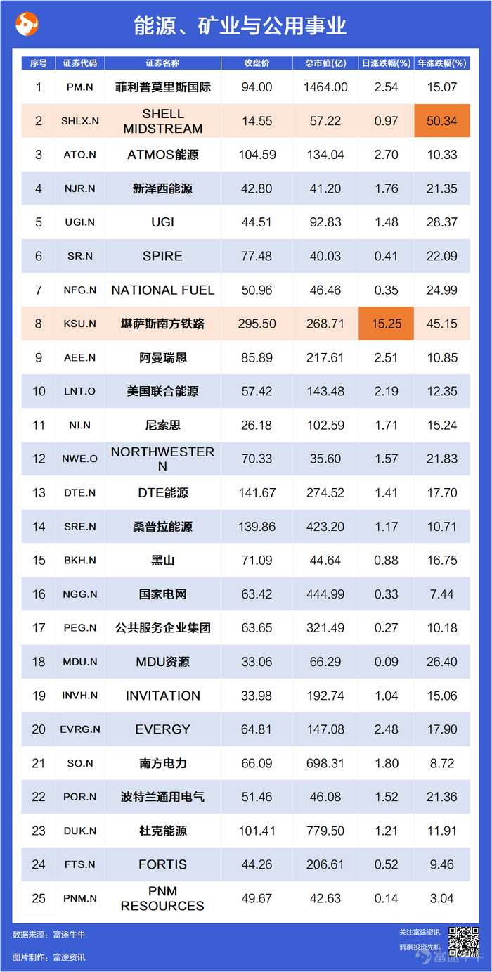 上个月, 美股牛股跟踪报道了加拿大太平洋铁路有限公司与堪萨斯市南部铁路公司达成了一项价值250亿美元的并购交易。 当日,堪萨斯南方铁路公司跳涨跃升超11%创新高。
