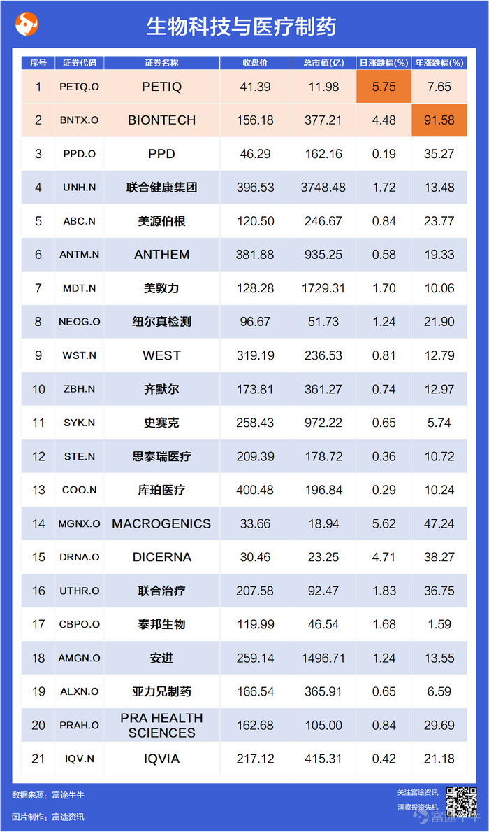 强生疫苗在美暂停使用令周五结束, $BioNTech SE(BNTX.US)$ 涨4.48%,年涨幅已达到91.58%。