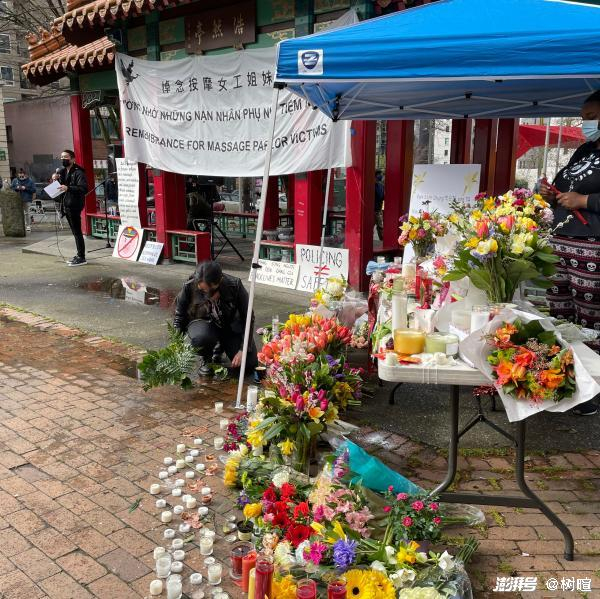 聚集在西雅图悼念的人们,2021年3月,作者摄