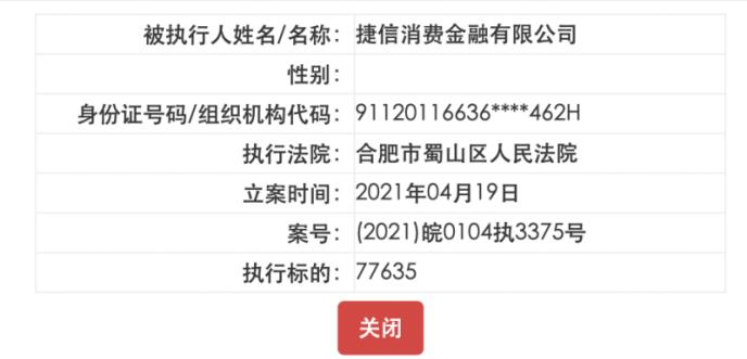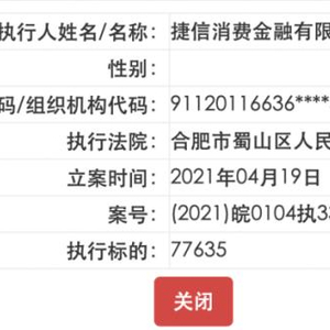 中国执行信息公开网显示,不日前,捷信消费金融被列为被执行人,执行标的涉7.76余万元。据天眼查数据,该案是一起股权转让纠纷,捷信消费金融作为原告,原本以调解方式结案。