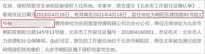 此前,有网友扒出黄晓明于2019年9月份提告的法庭判决书,该判决书于2021年2月21日发布,内容为黄晓明与某家公司的网络侵权责任纠纷案件,但是在该判决书中却意外曝光了黄晓明目前在京的常住地。据判决书显示,黄晓明的居住地址为“朝阳区建国路91号院1号楼”,证件发证日期为2018年4月,有效期至2021年4月。