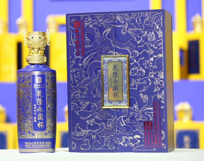 “乾隆永固杯”酒以国宝珍品清乾隆皇帝御用的金瓯永固杯为原型,再现了国宝金樽风采,寓意江山永固、基业长青、富贵永恒。