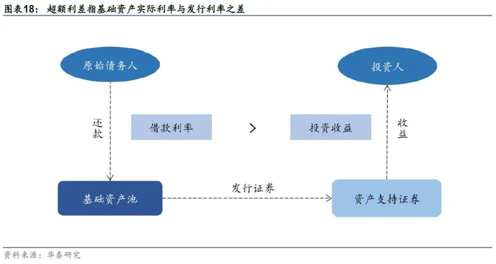 超额利差指基础资产实际利率与发行利率之差,需考虑资产循环购买风险。超额利差的大小由基础资产付息现金流扣除应付利息和各项税费后的差额决定。一般而言,超额利差主要用于债权类ABS,通常用基础资产加权平均贷款利率减去ABS加权平均利率与各项费率之和的差值来表示。当基础资产发生损失时,首先由超额利差部分进行吸收,从而为资产支持证券的还本付息提供了保障。值得注意的是,在循环购买机制下,若存续期限较长且市场处于利率下行阶段,新入池的基础资产的实际利率也将随之降低,导致超额利差压缩、信用保护变薄。